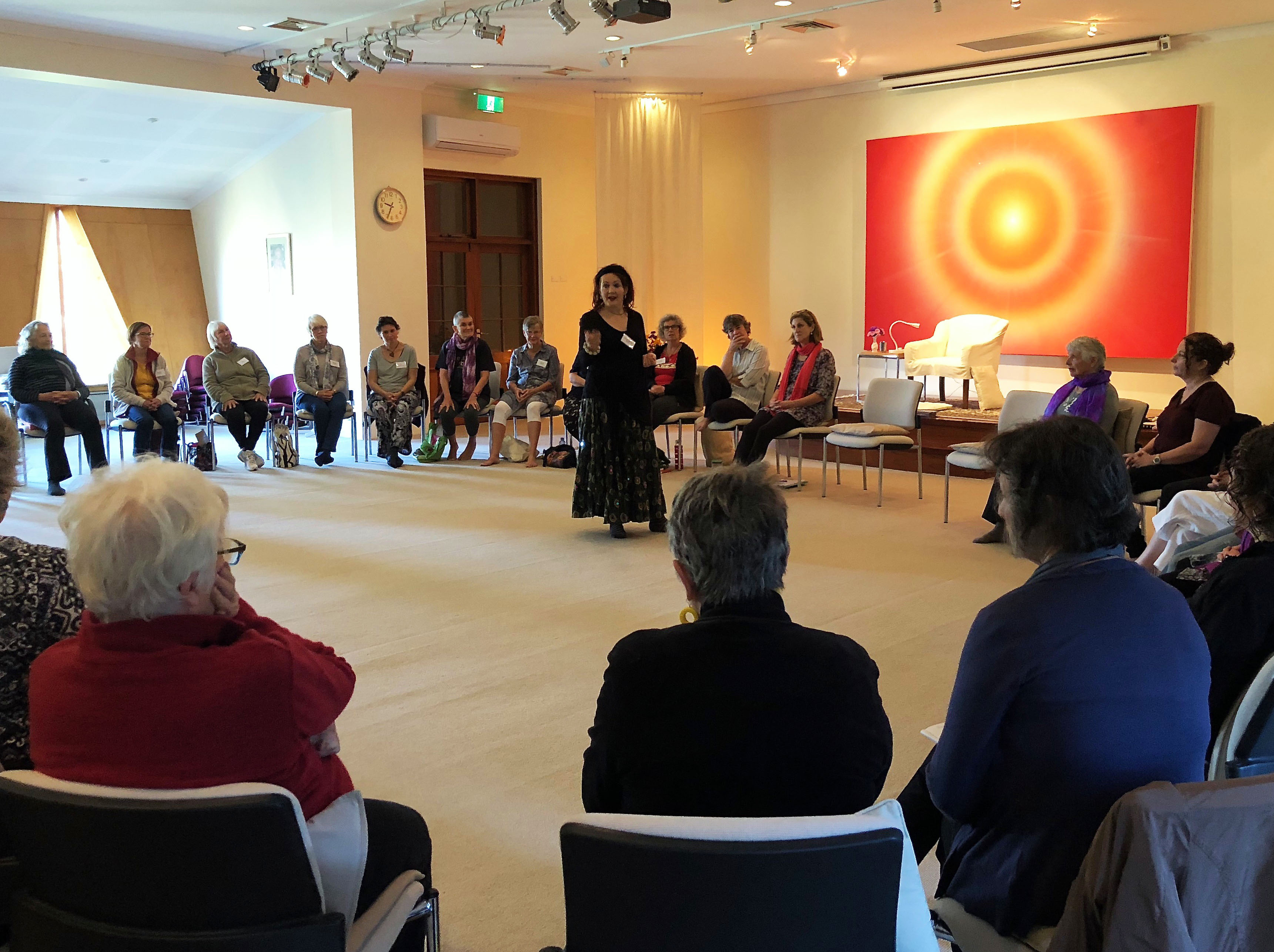 Jane from Brisbane starts the session. She gives her name, home city and the reason she joined the threshold choir.