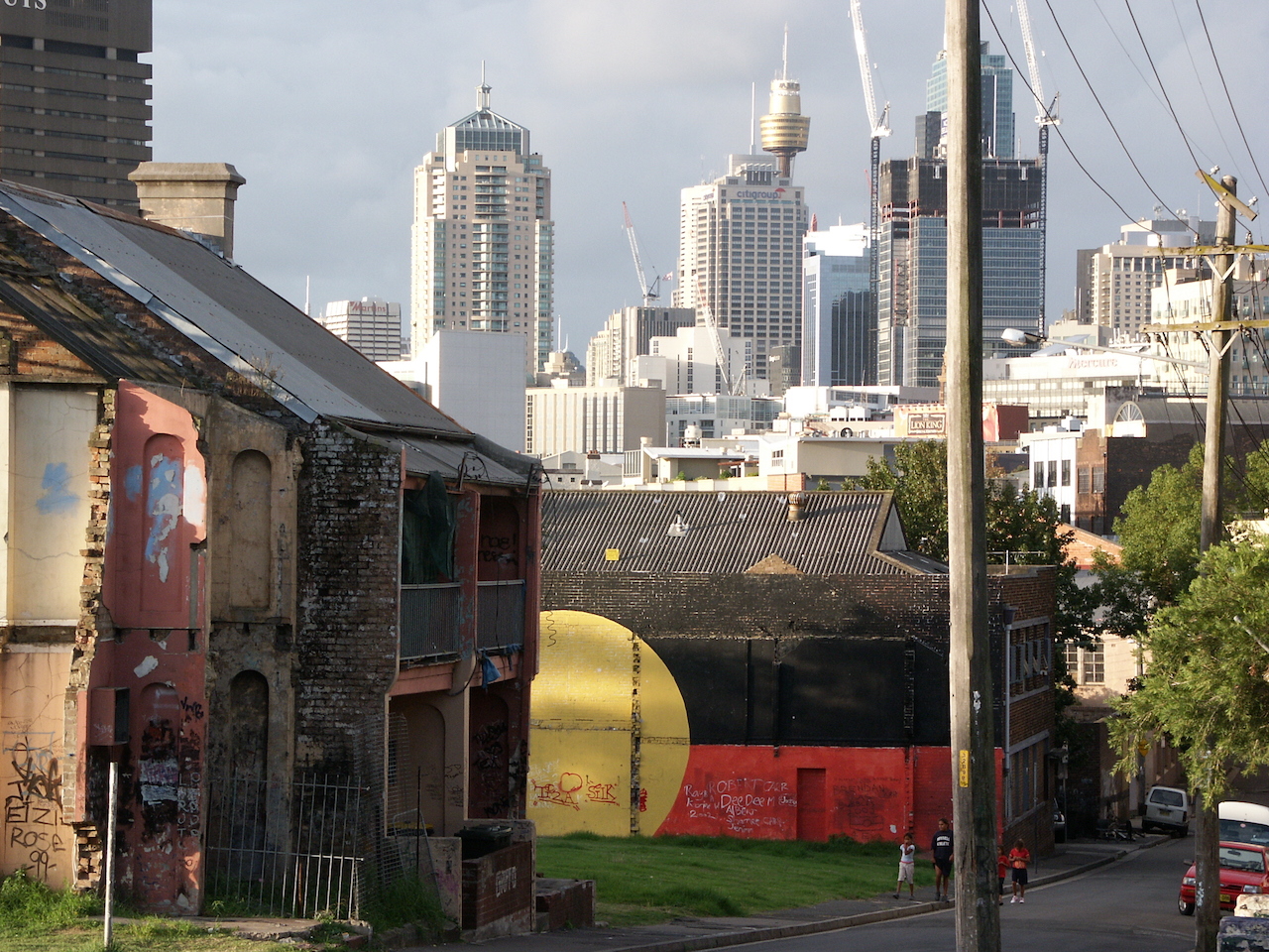 Aboriginal flag mural, Eveleigh Street Redfern, circa 2003 City of Sydney Archives Patricia Baillie, collection owned and licensed by City of Sydney Archive